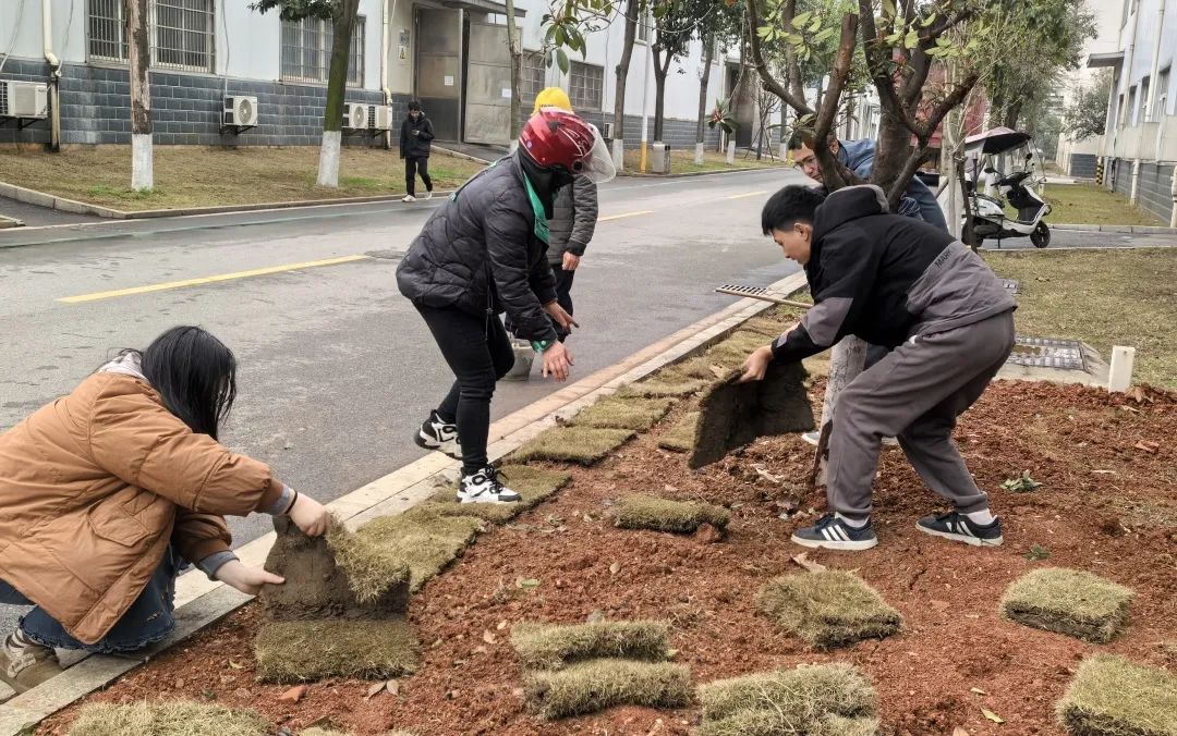 子公司金馳能源團(tuán)委?踐行“綠水青山就是金山銀山”理念,組織青年在園區(qū)內(nèi)開(kāi)展種植樹(shù)苗、鋪種草皮等志愿服務(wù)行動(dòng),團(tuán)員青年們揮鍬挖坑、扶苗培土、提桶澆水,種植樟樹(shù)苗100余棵,為園區(qū)增添一抹新綠。職能部門(mén)聯(lián)合團(tuán)支部也在園區(qū)開(kāi)展了園區(qū)衛(wèi)生清理等志愿服務(wù)活動(dòng)。